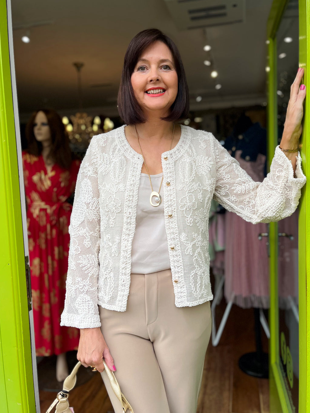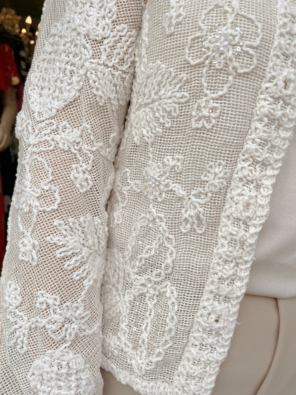 Fiadh Pearl & Bead Embroidered Crochet Cardi - Cream
