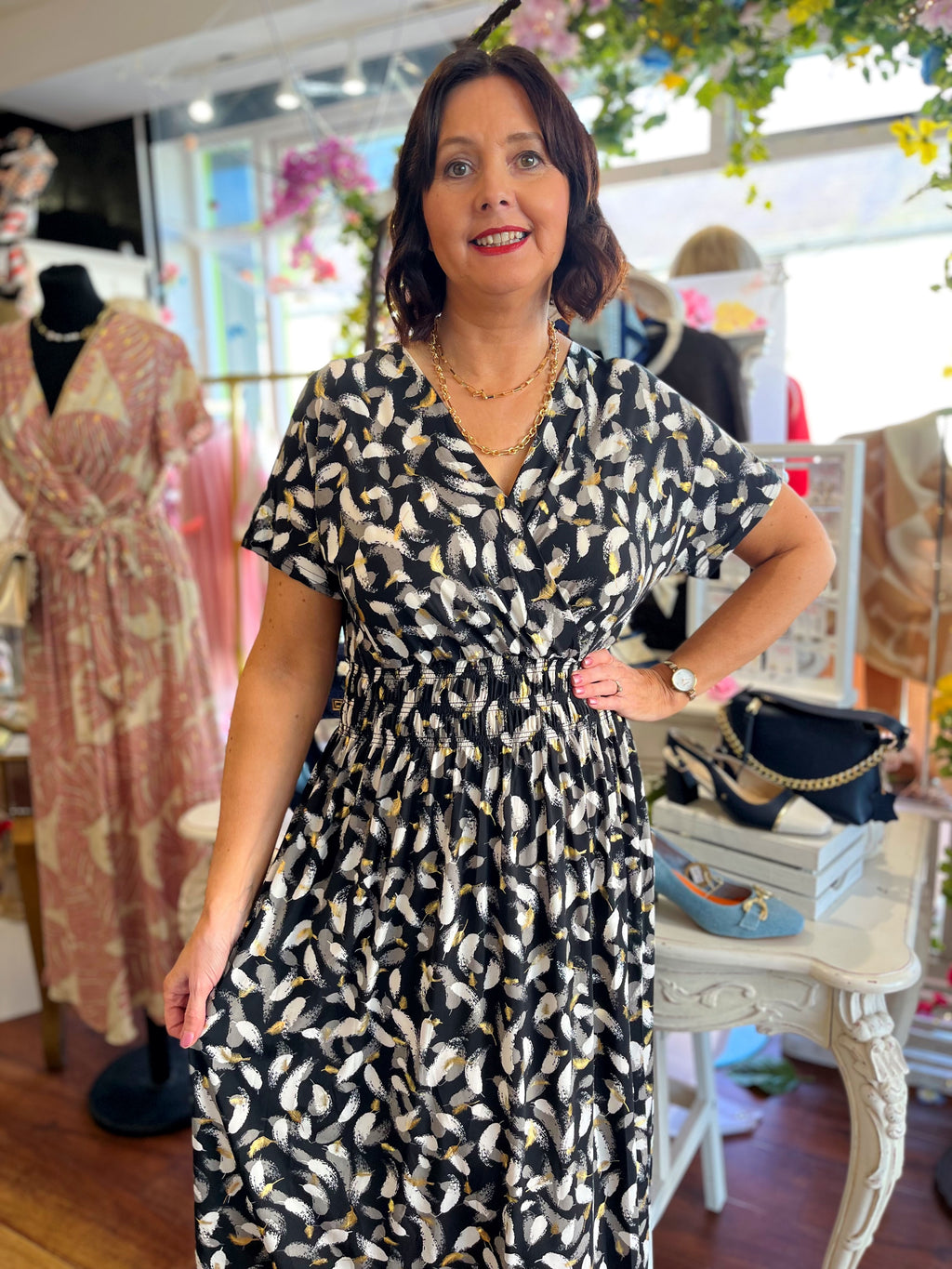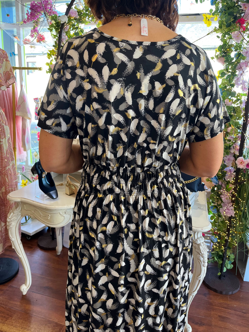 Magic Cap Sleeve Gold Leaf Maxi Dress - Black & Grey