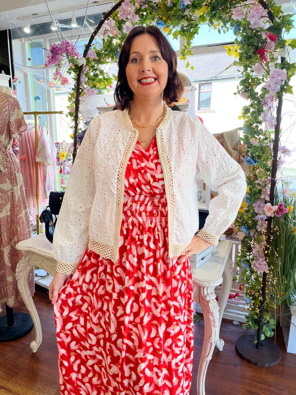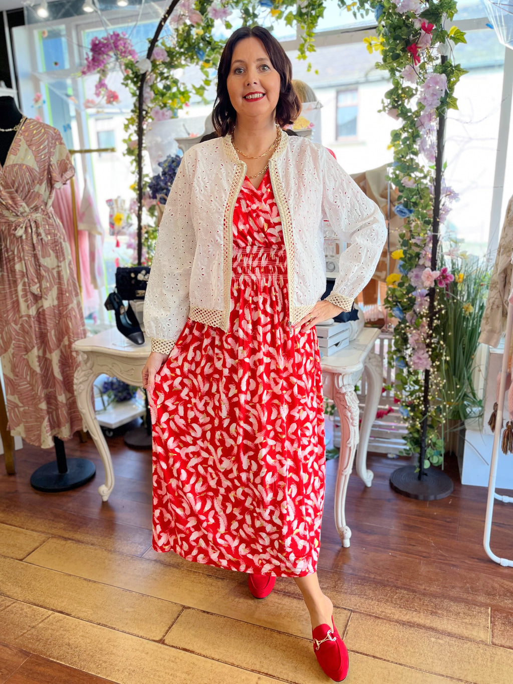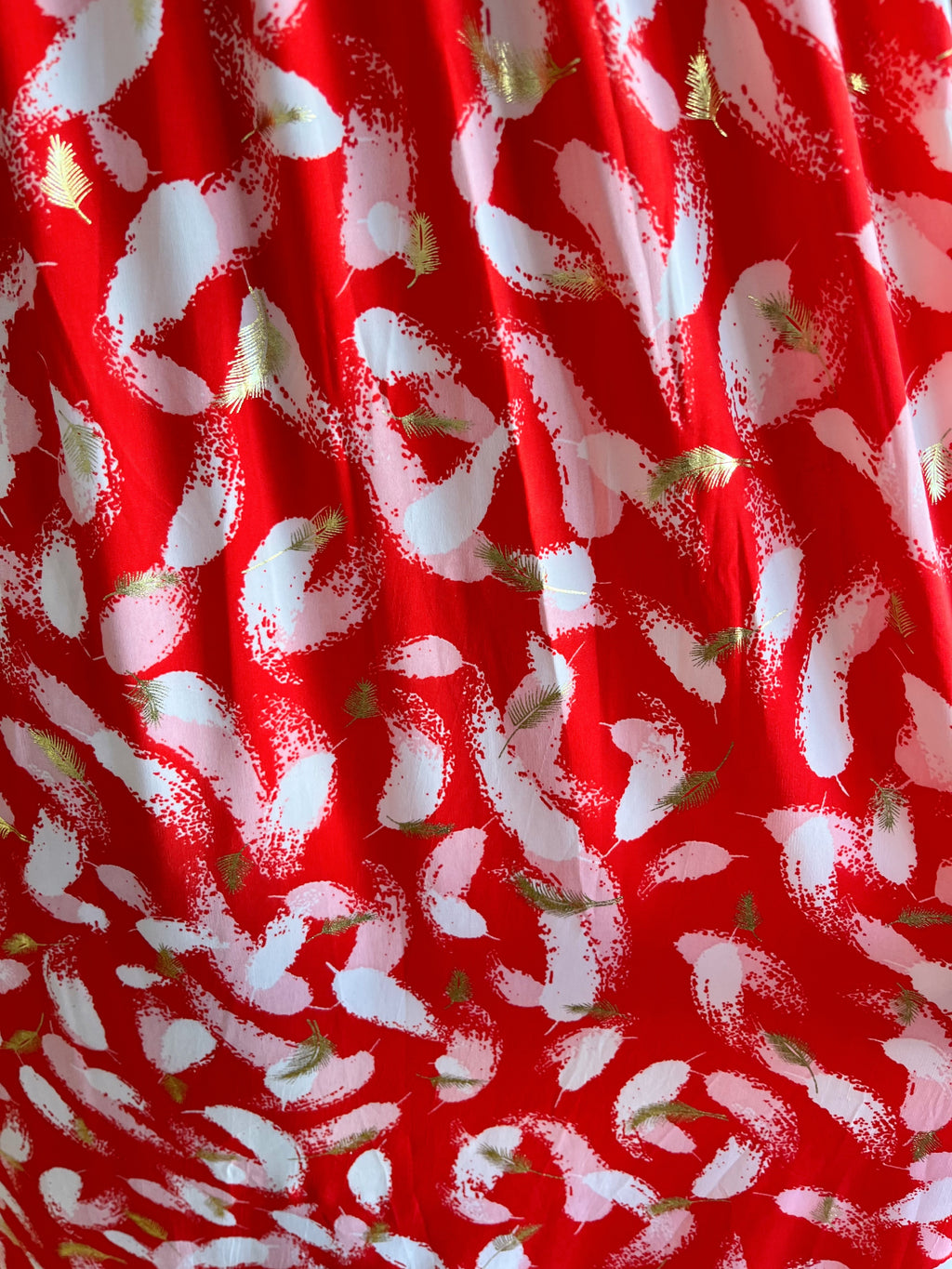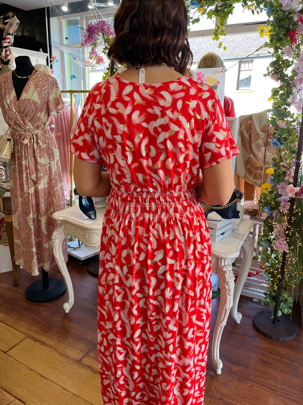 Magic Cap Sleeve Gold Leaf Maxi Dress - Red & Pink