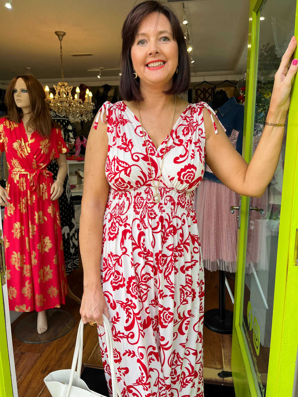 Magic Rose Print Maxi Dress - Red