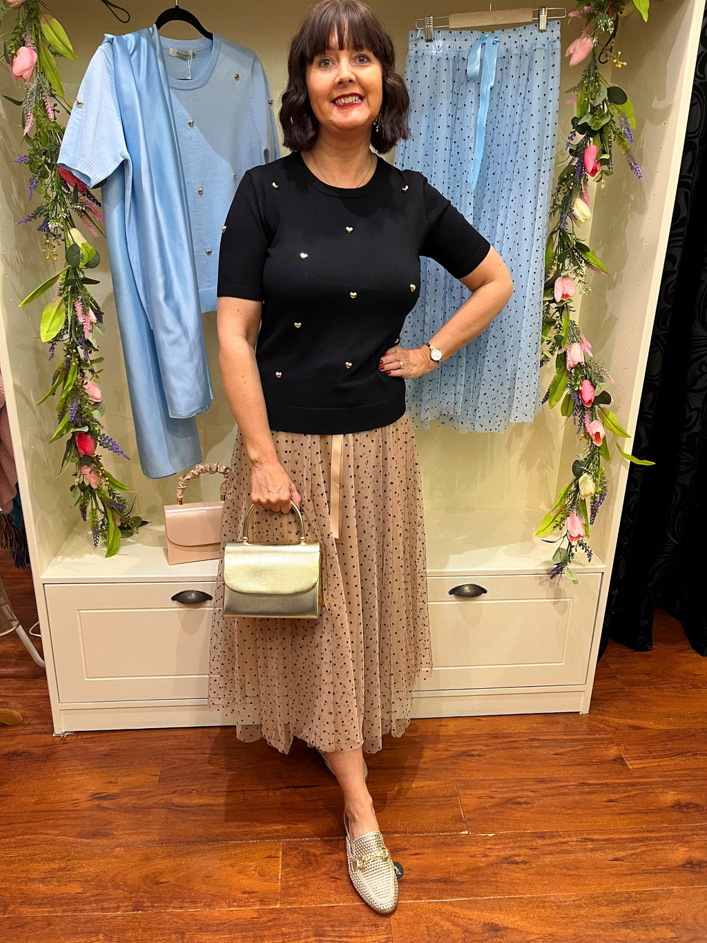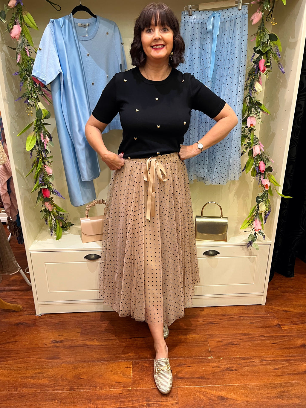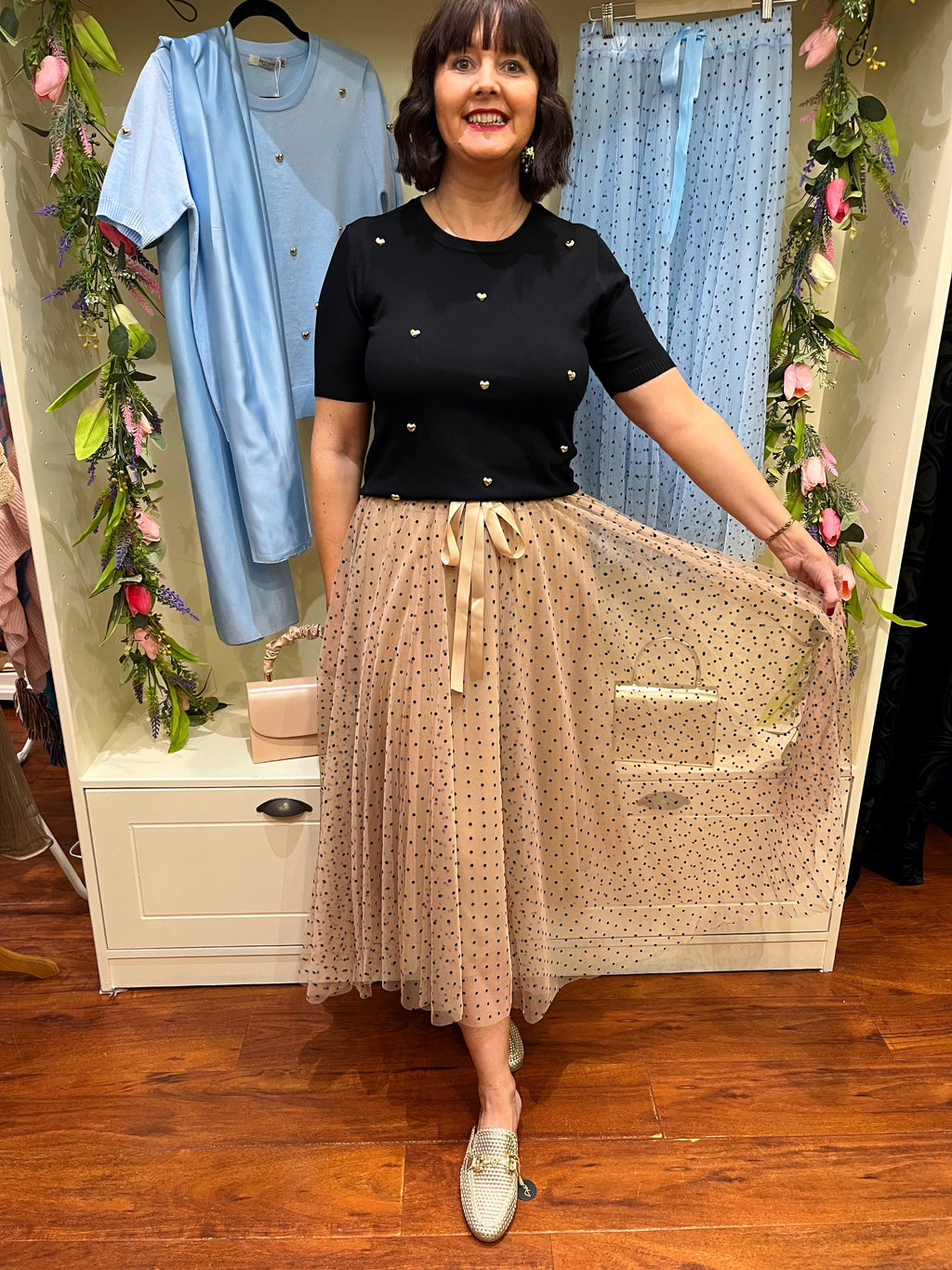 Lucia Tulle Skirt - Taupe with polka dots