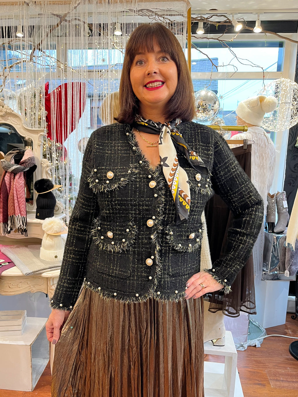 Fernanda Two Tone Printed Neck Scarf - Black & White