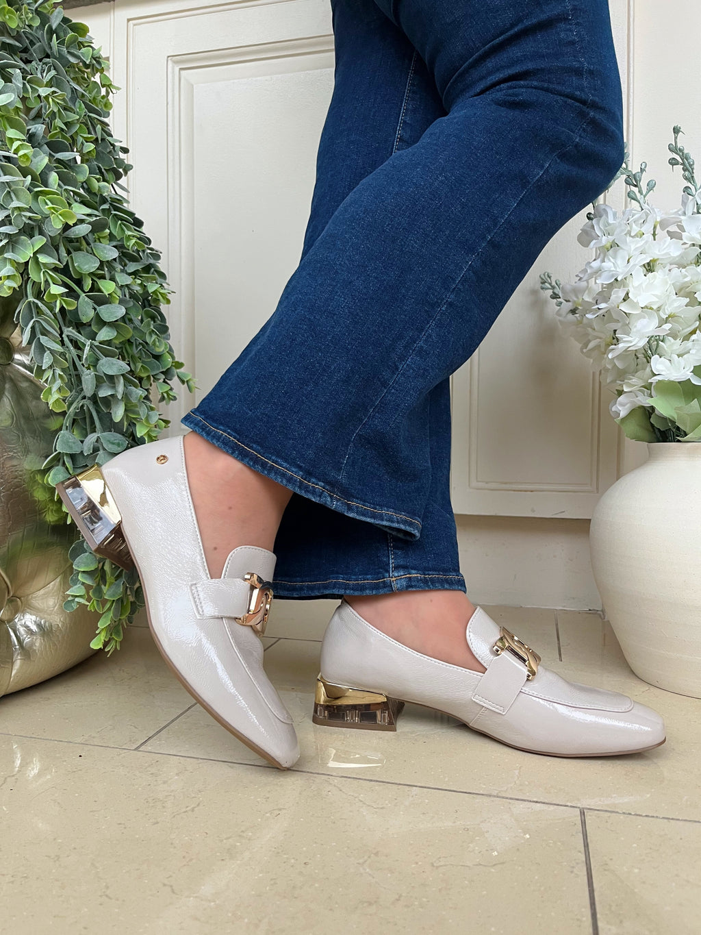 Gold block heel