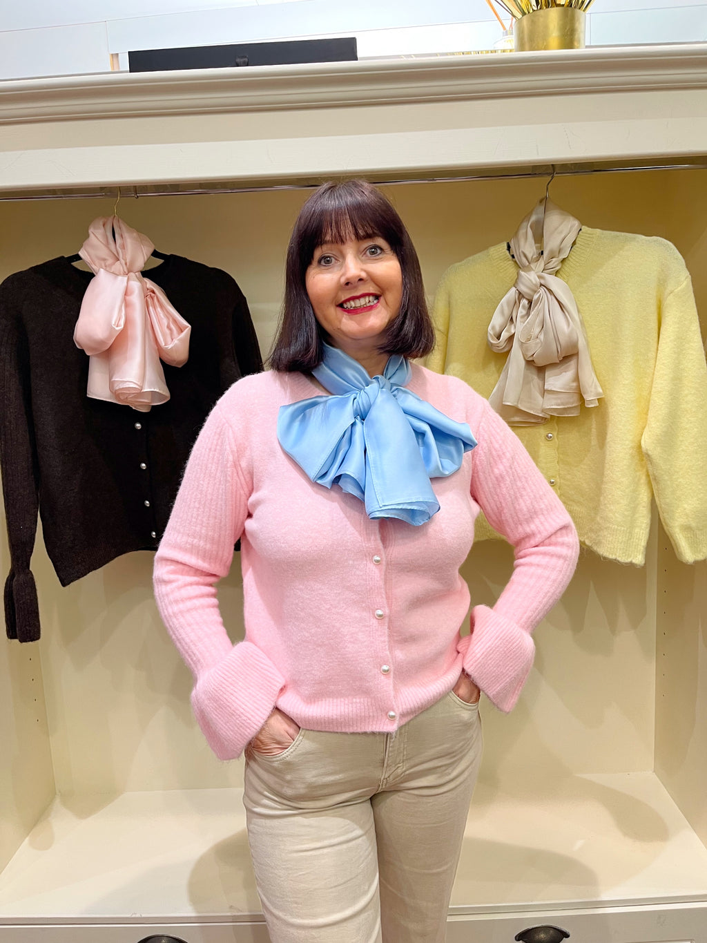 Clara Pearl Button Cardigan with Bell Sleeve - Baby Pink