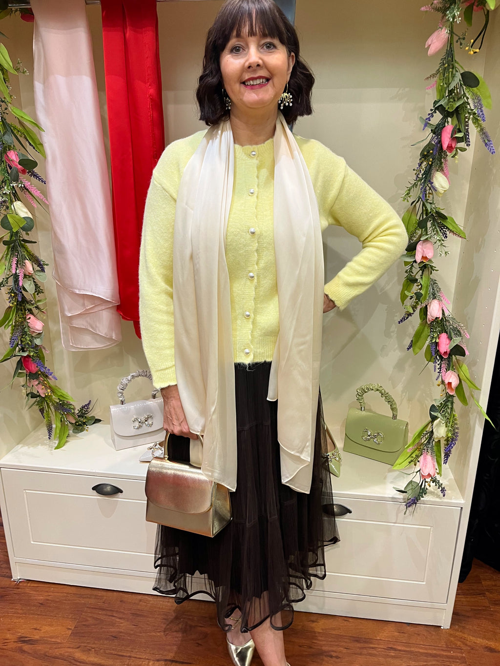 Ava Long Silk- Feel Scarf - Cream
