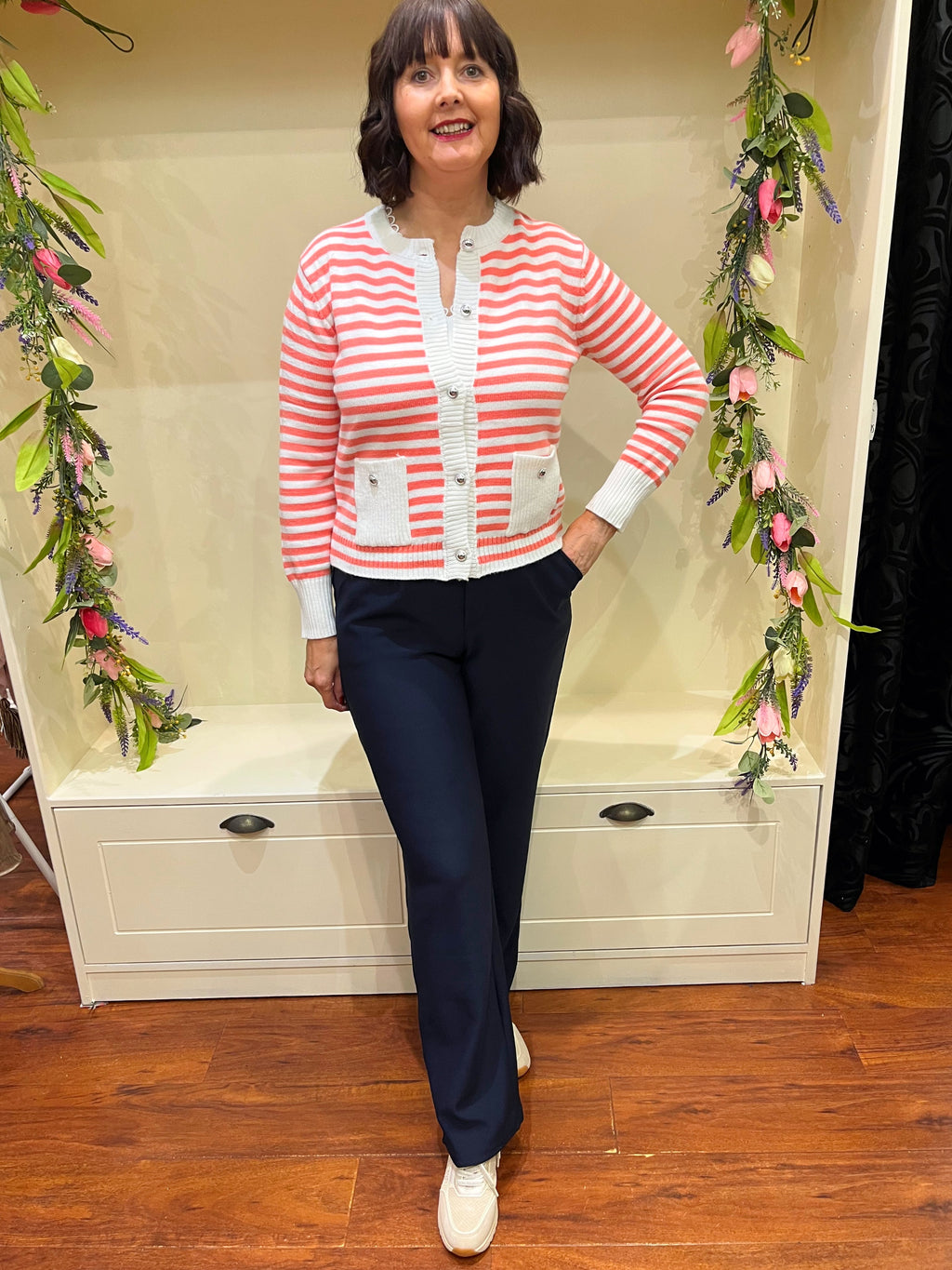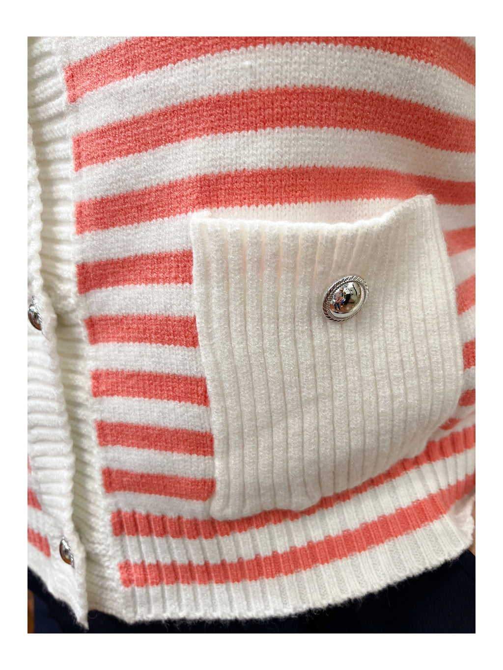 Coral Stripe Cardi With Silver Buttons
