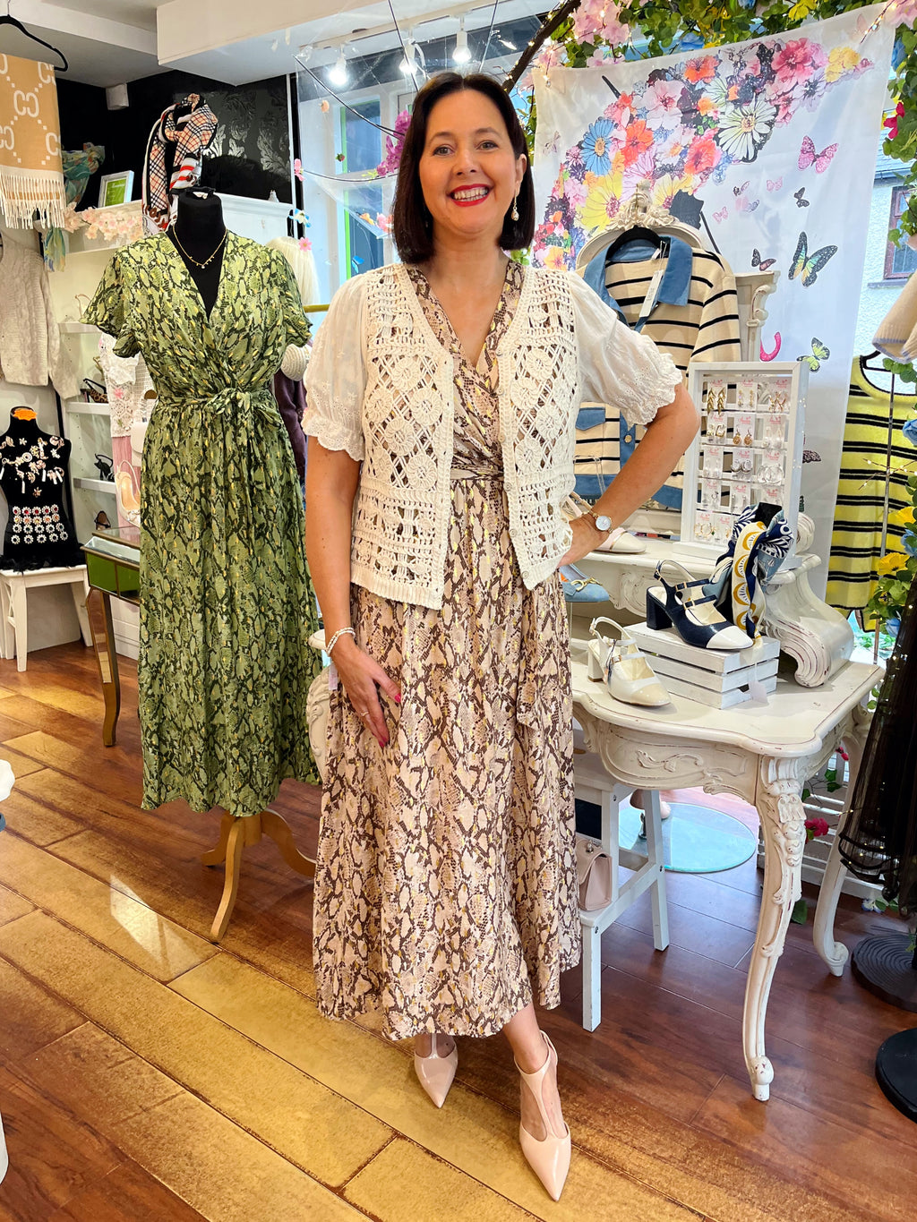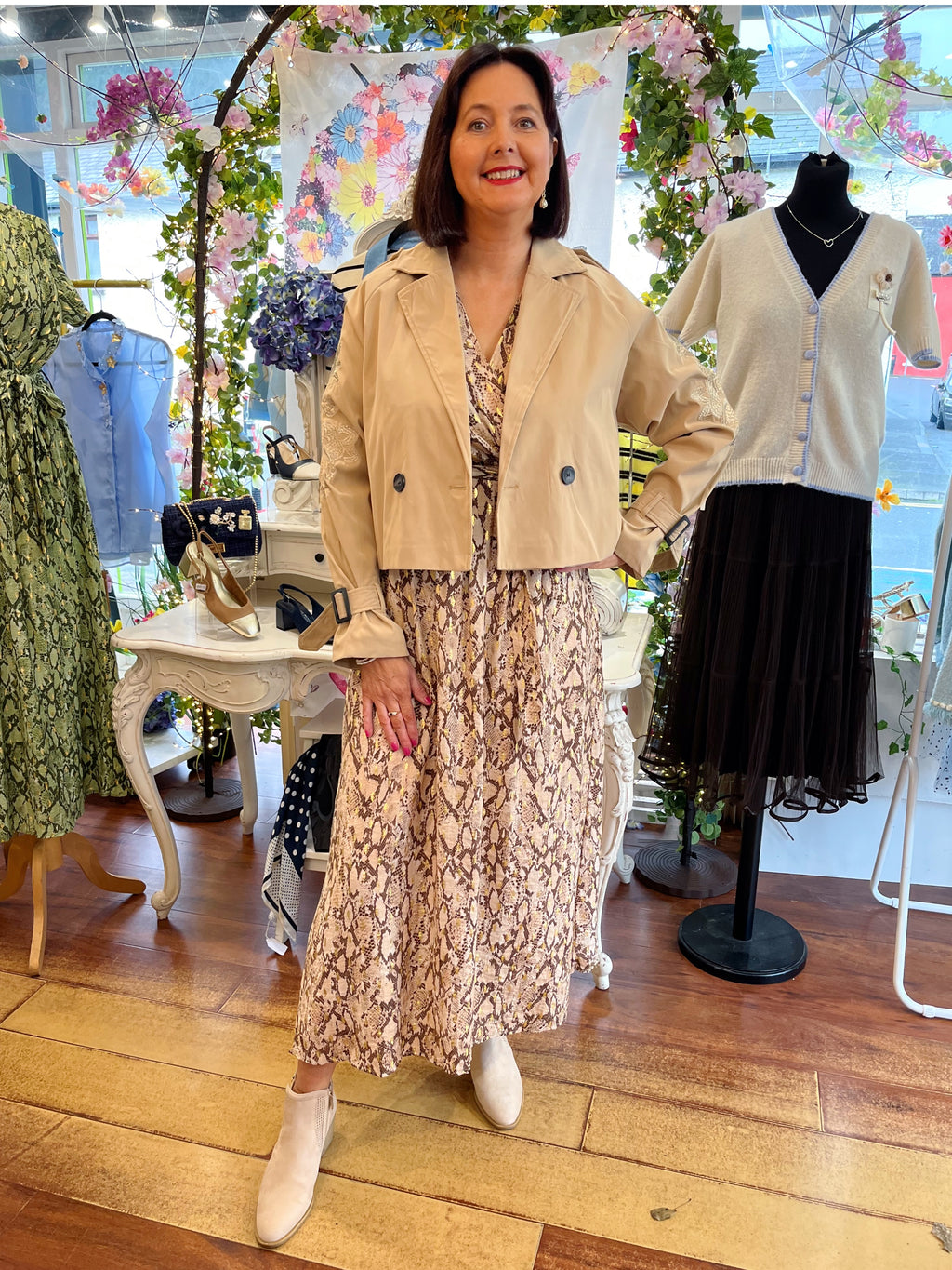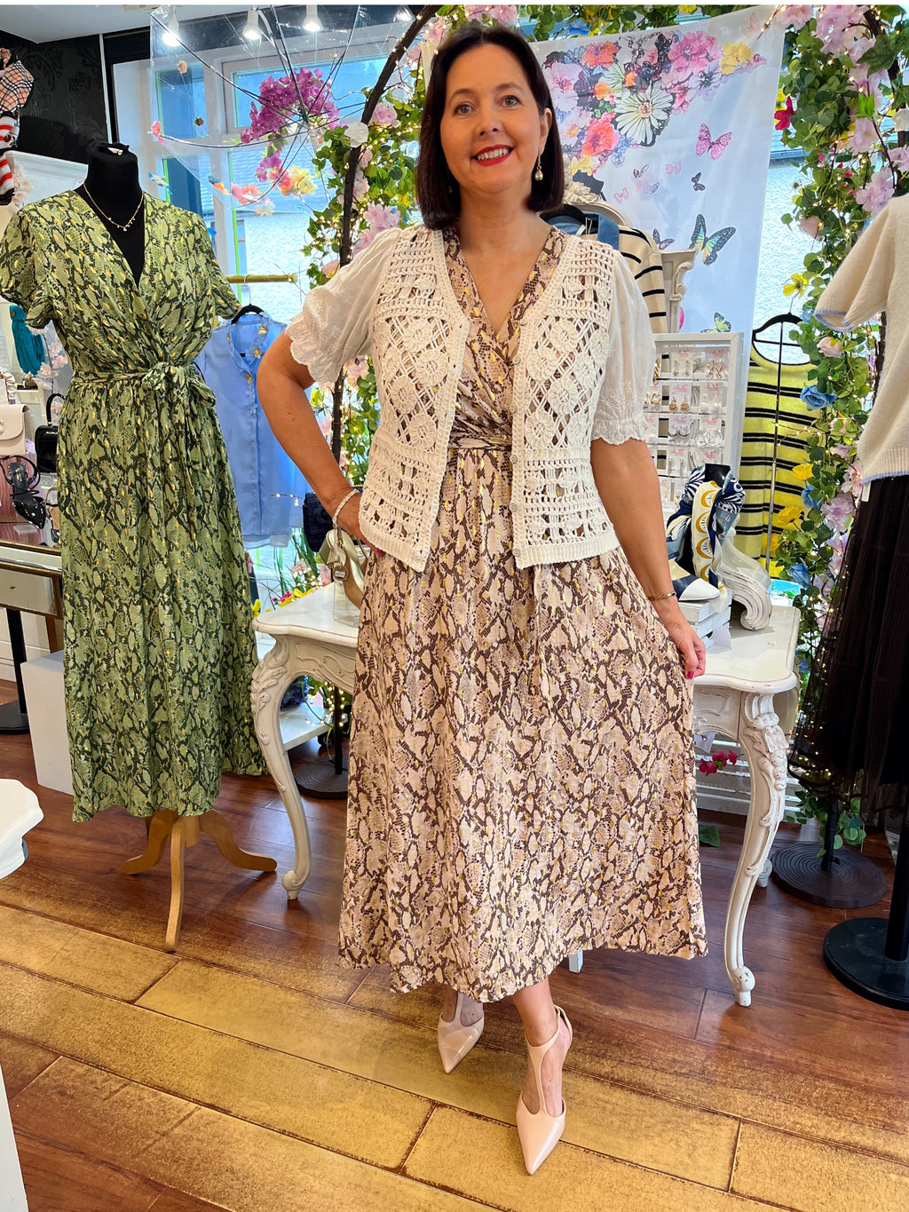 Darla Gold & Snake Print Dress - Beige
