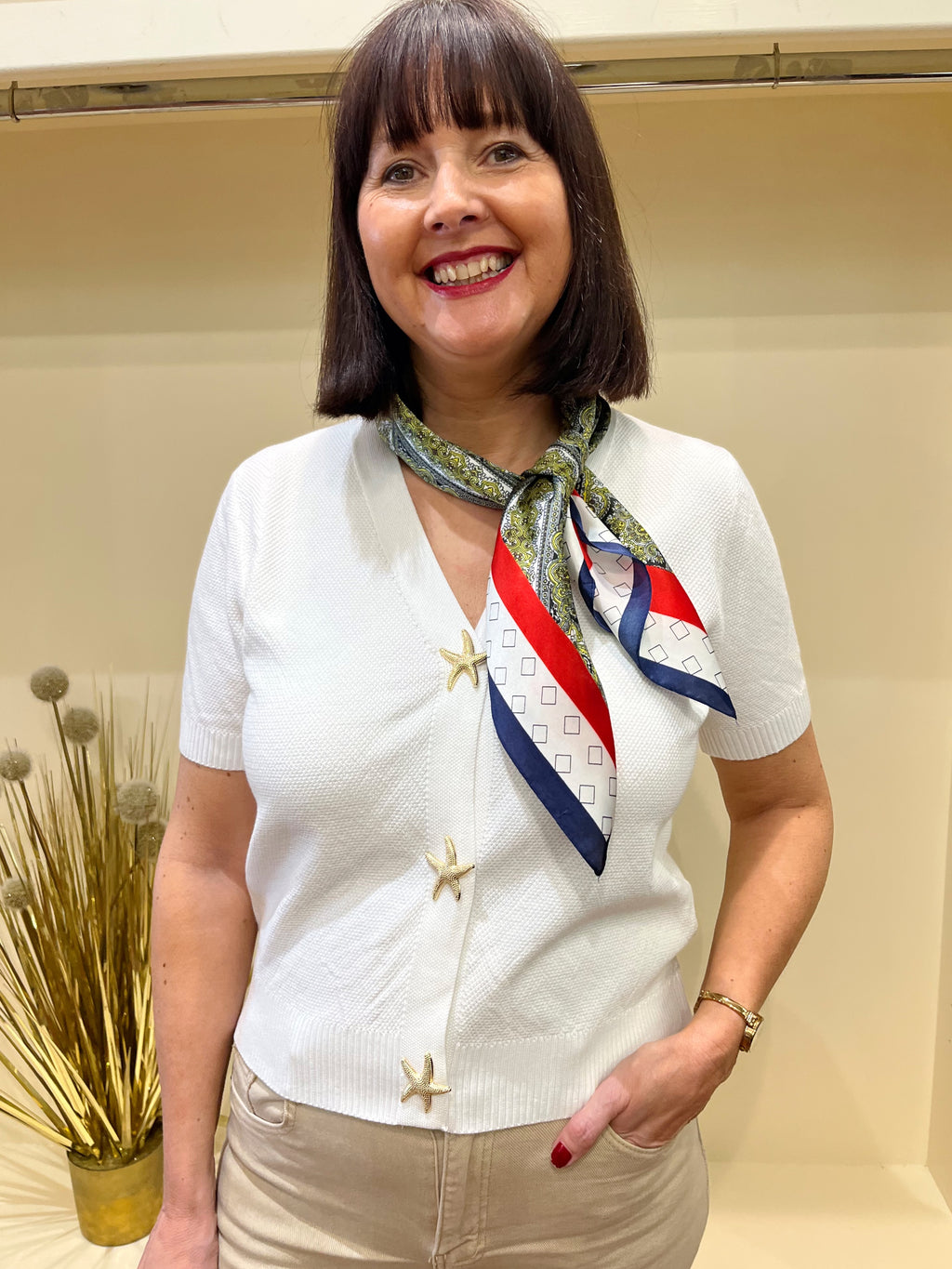 Ebony Paisley & Stripe Printed Neck Scarf - Navy