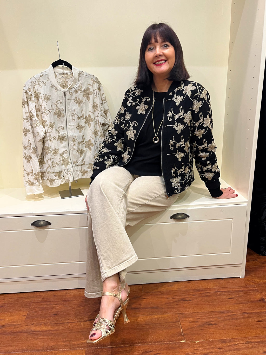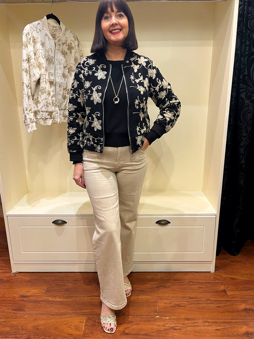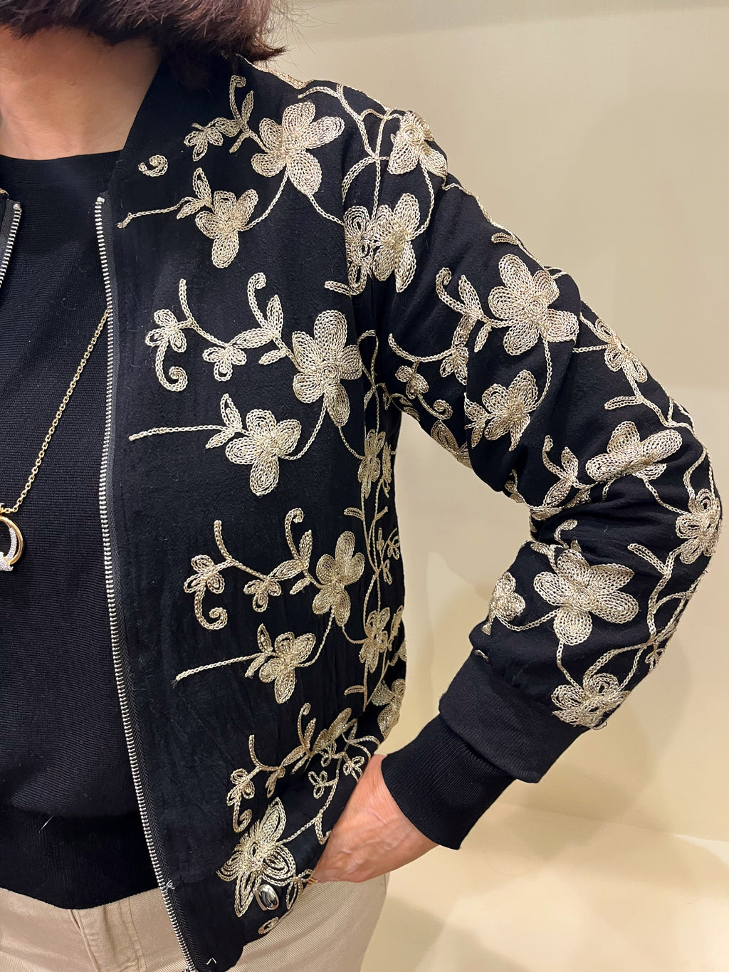Ellie Metallic Embroidered Bomber Jacket - Black