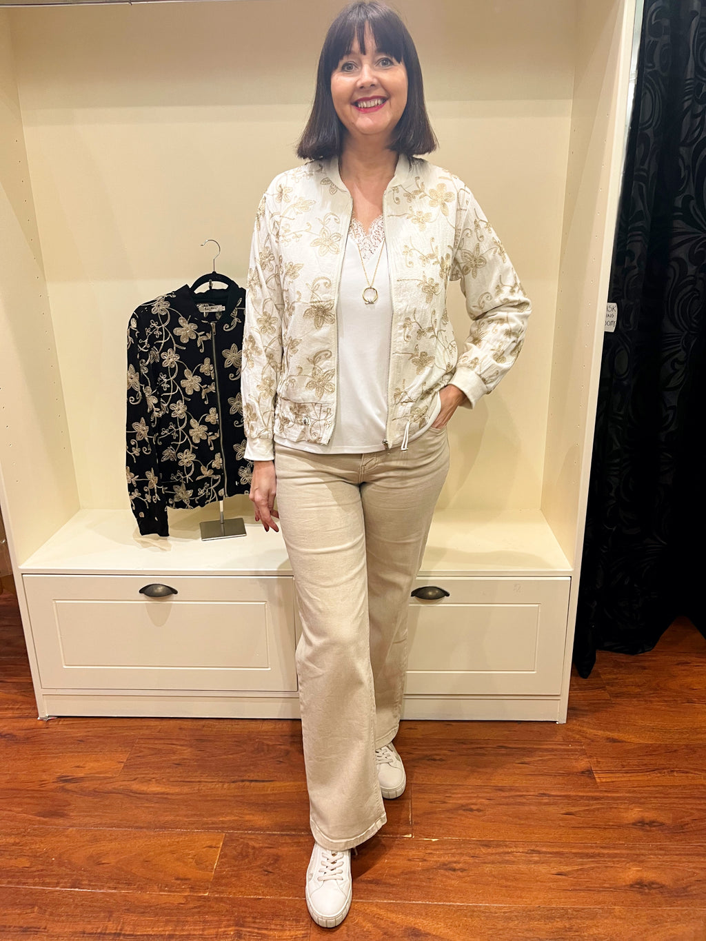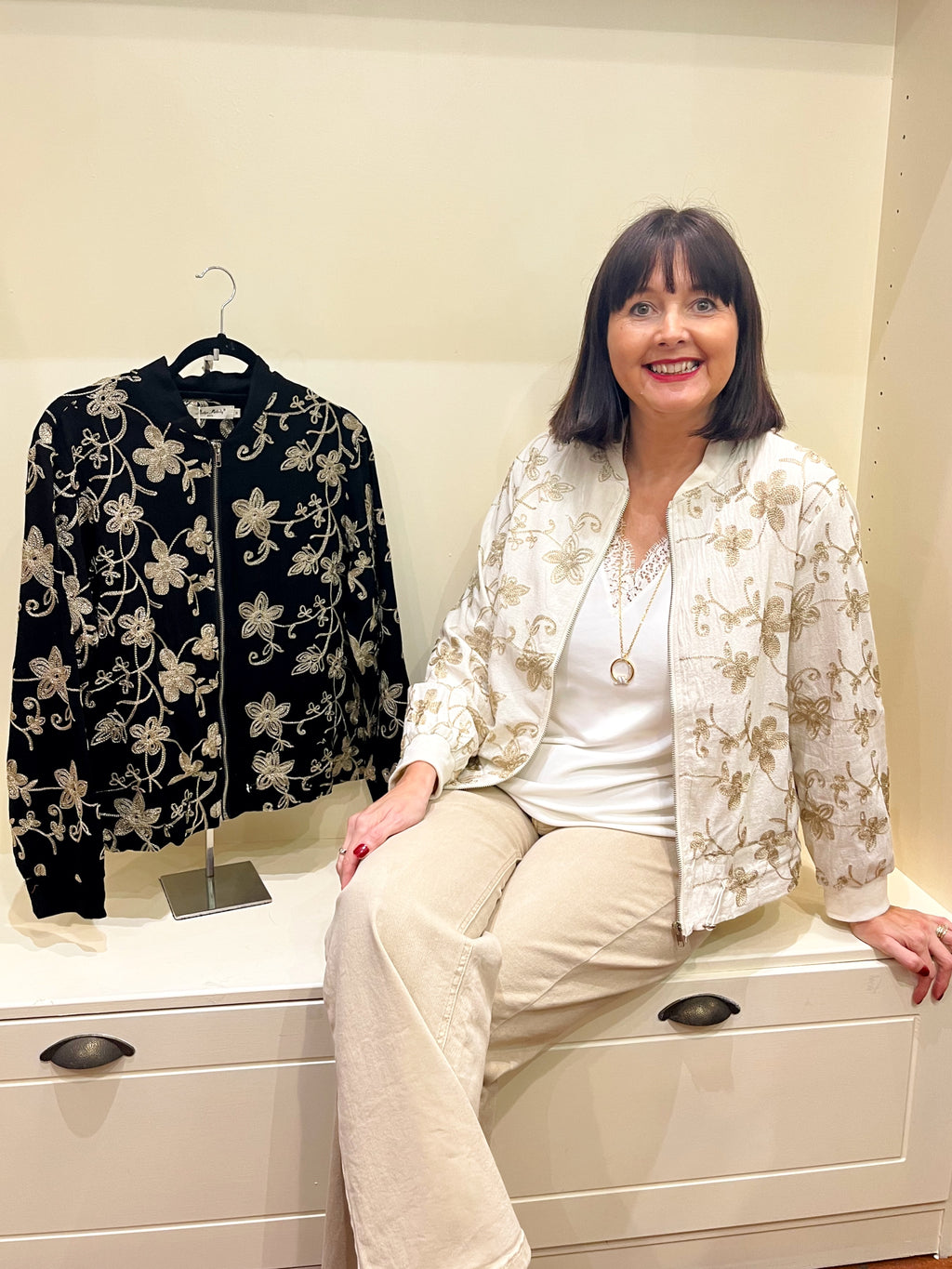 Ellie Metallic Embroidered Bomber Jacket - Cream