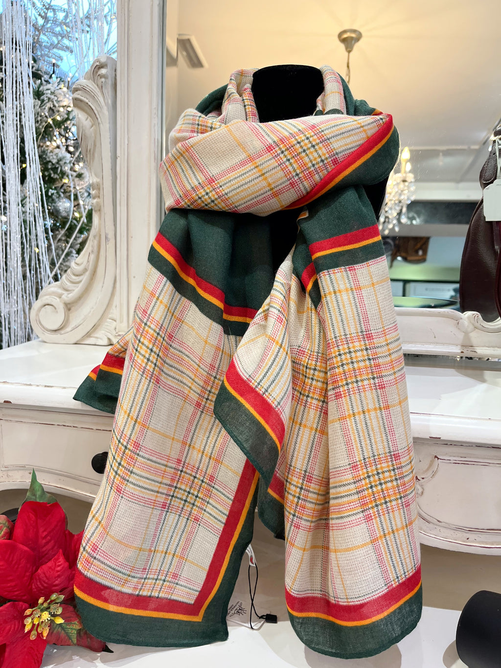 Elody Tartan Printed Scarf - Green, Dark Red & Mustard