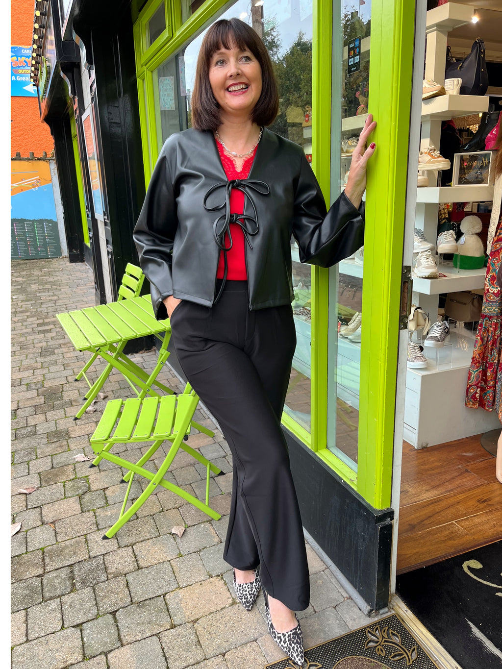 Gracie Faux Leather Bow Tie Jacket - Black