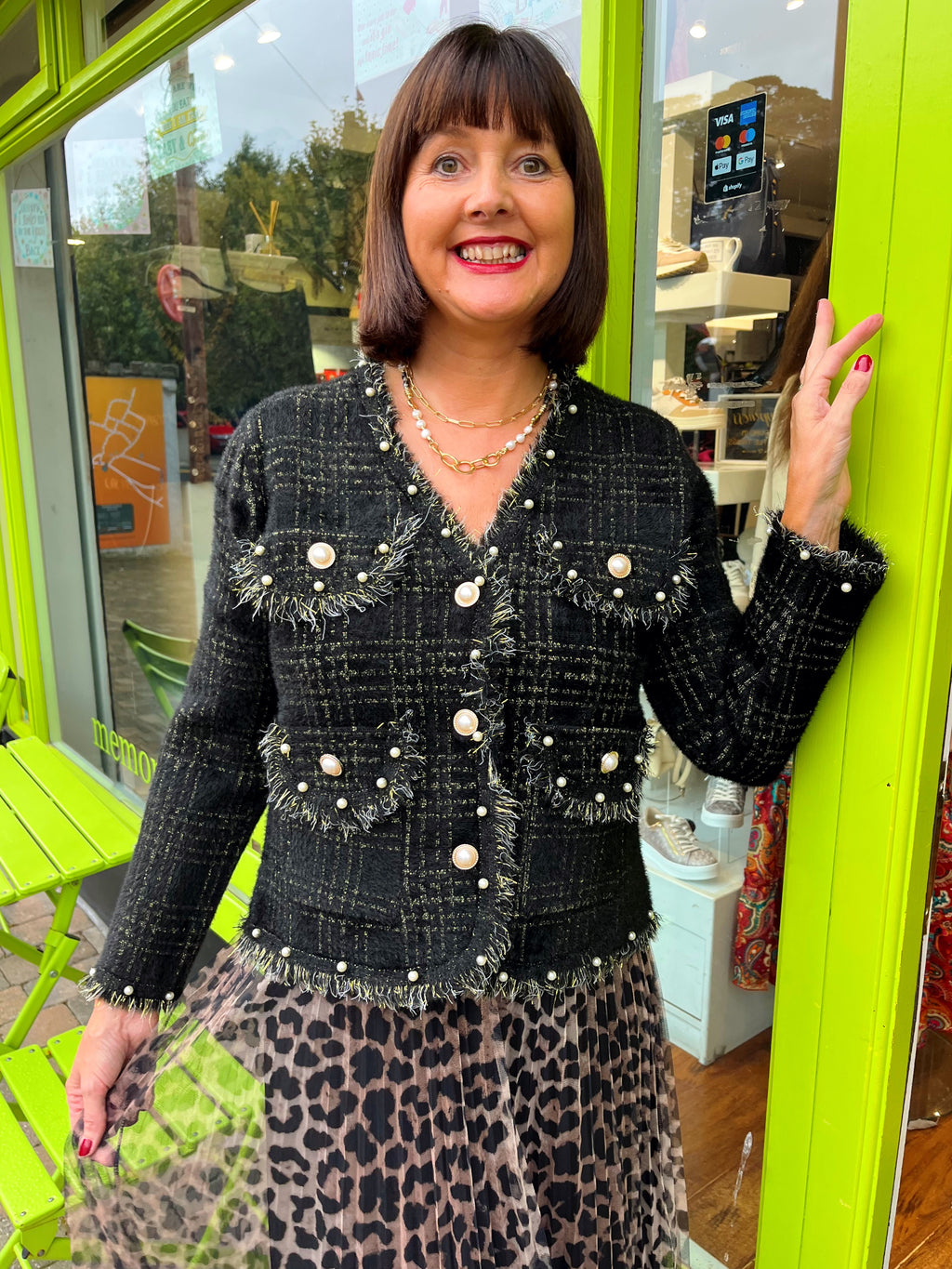 Laurel Gold Thread & Pearl Knitted Jacket - Black