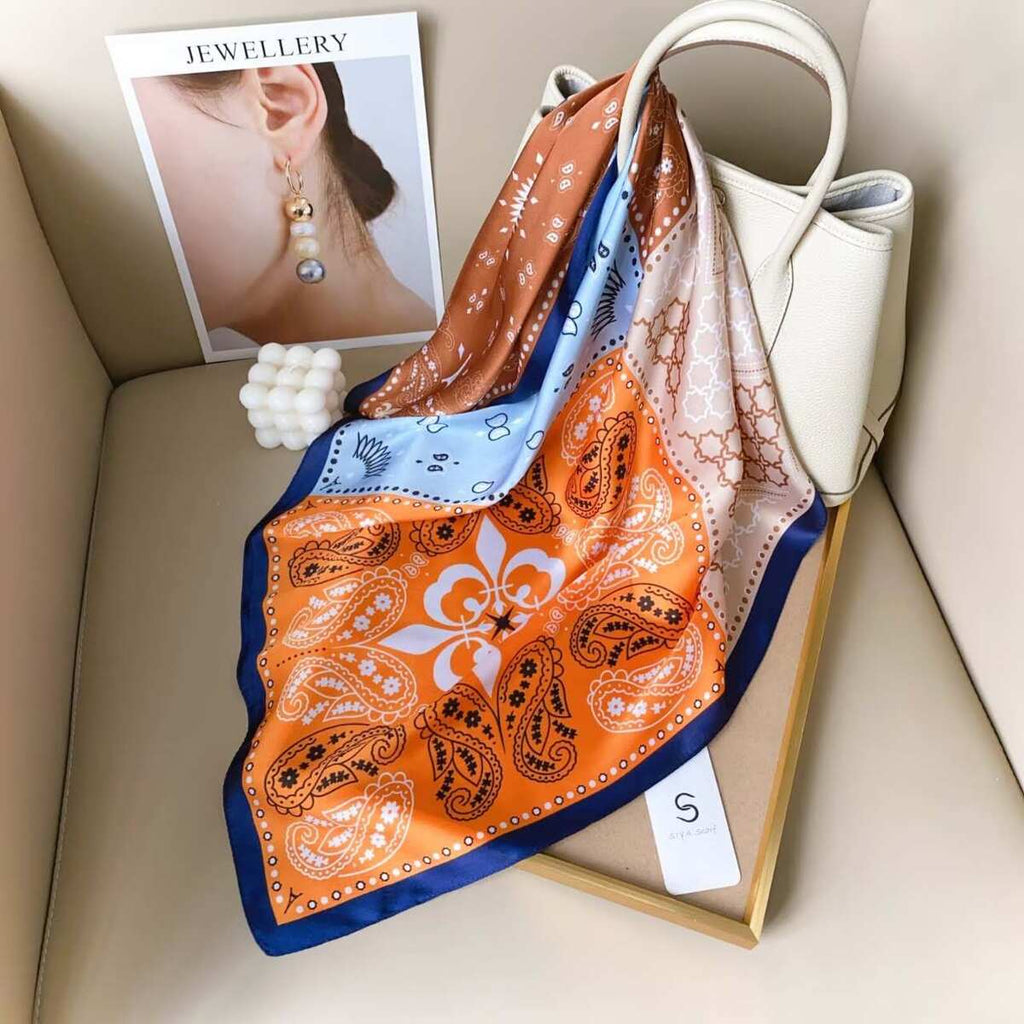 Mae Paisley Printed Neck Scarf - Orange, Blue & Brown