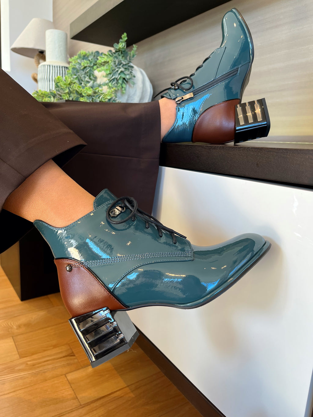 Redz Lace Up Ankle Boot - Teal/Tan H1002