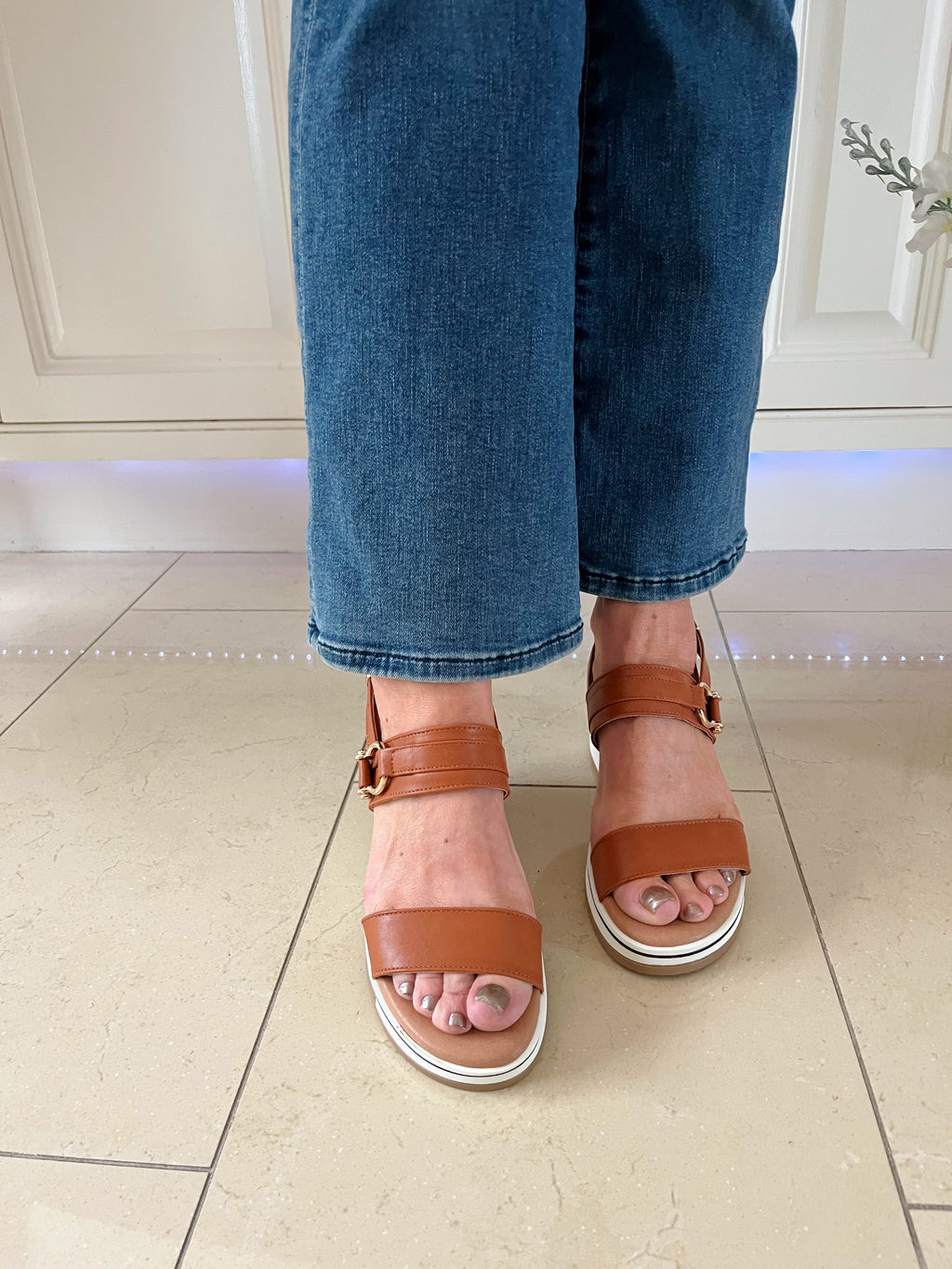 Redz Gold Buckle Wedge Sandals - Tan CF21202