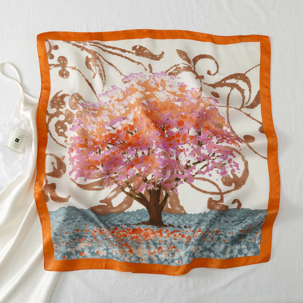 Tabitha Tree of Life Printed Neck Scarf - Orange, Pink & Ocean