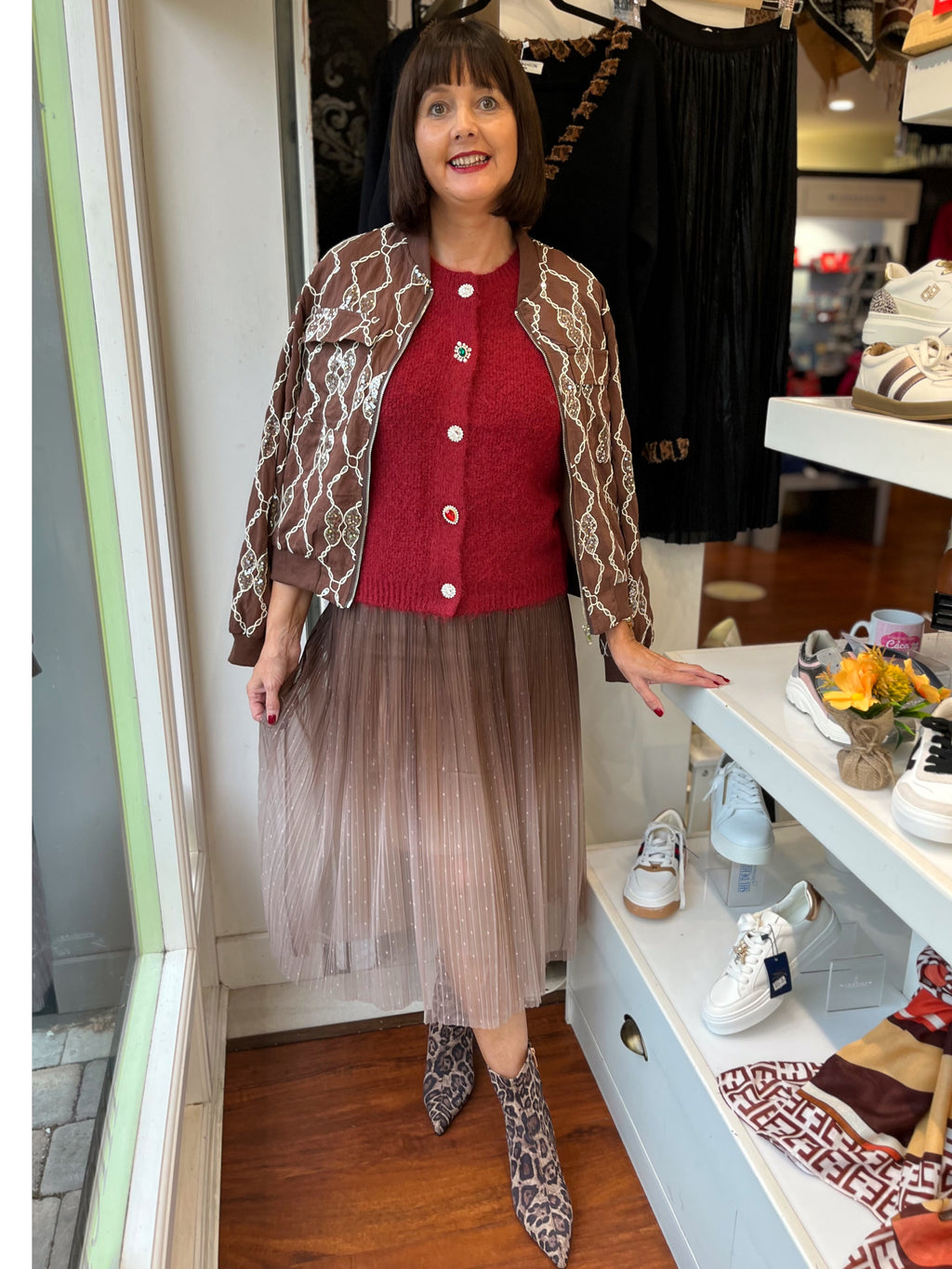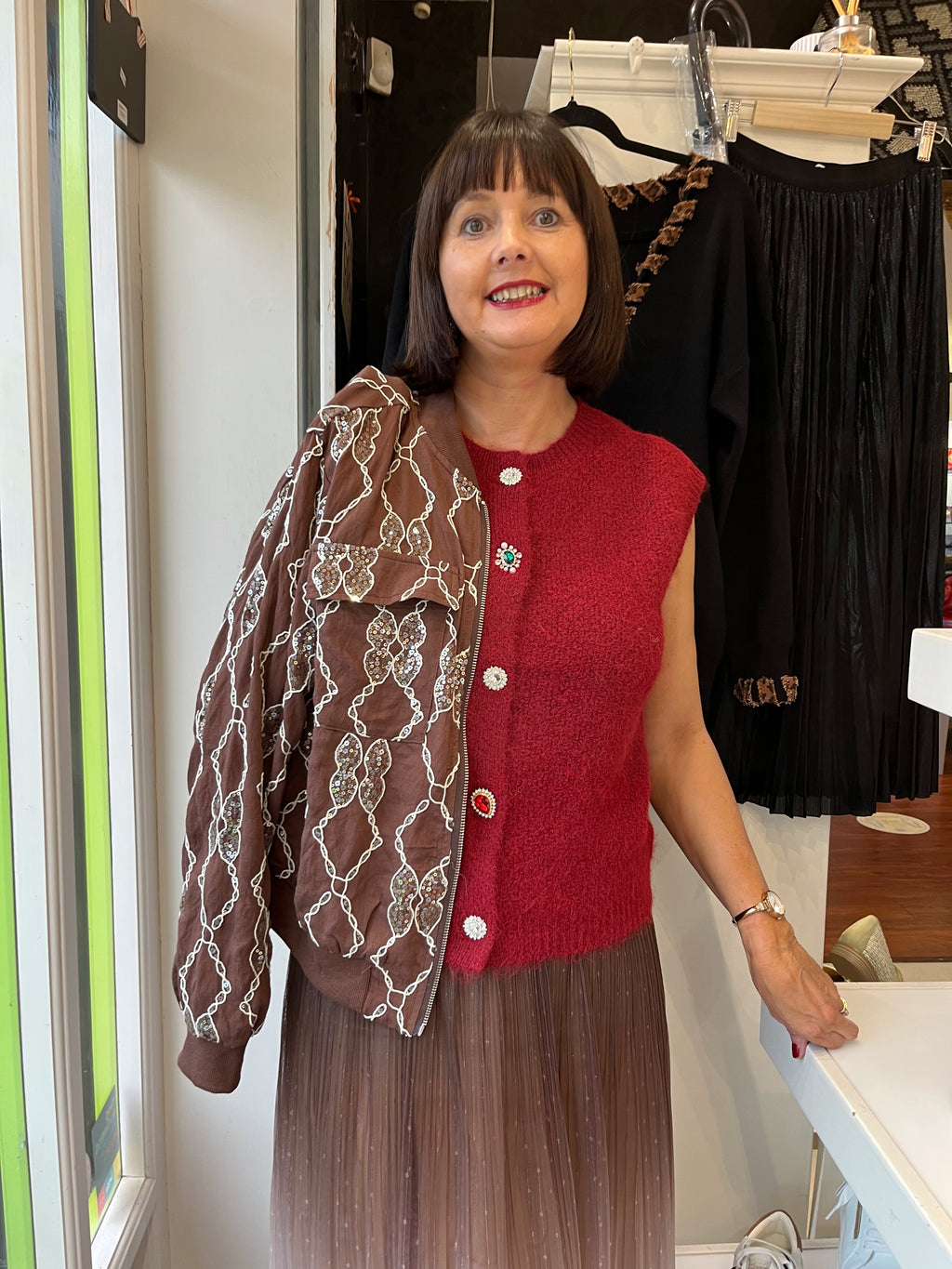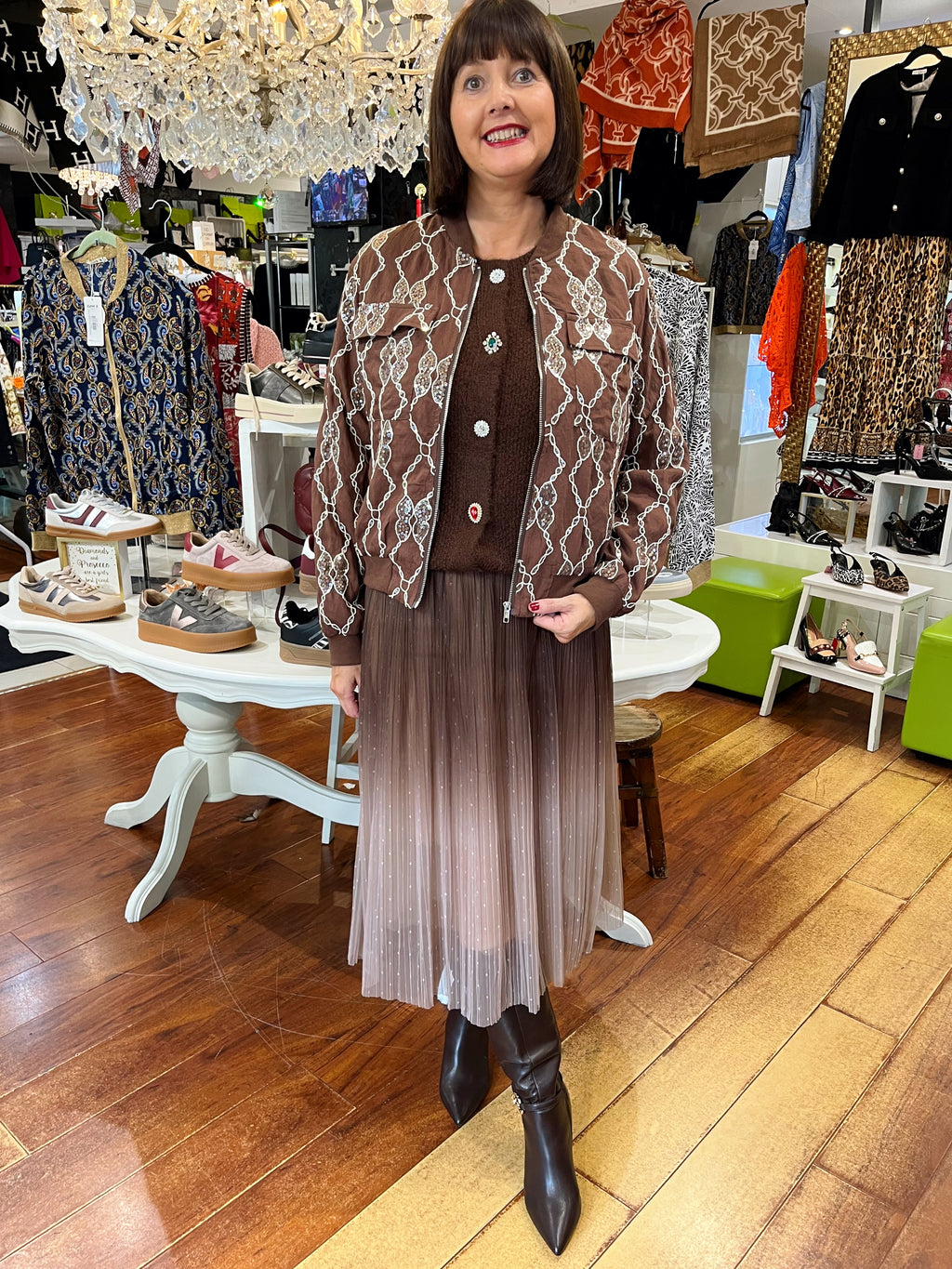 Trey Sequin & Embroidery Bomber Jacket - Chocolate
