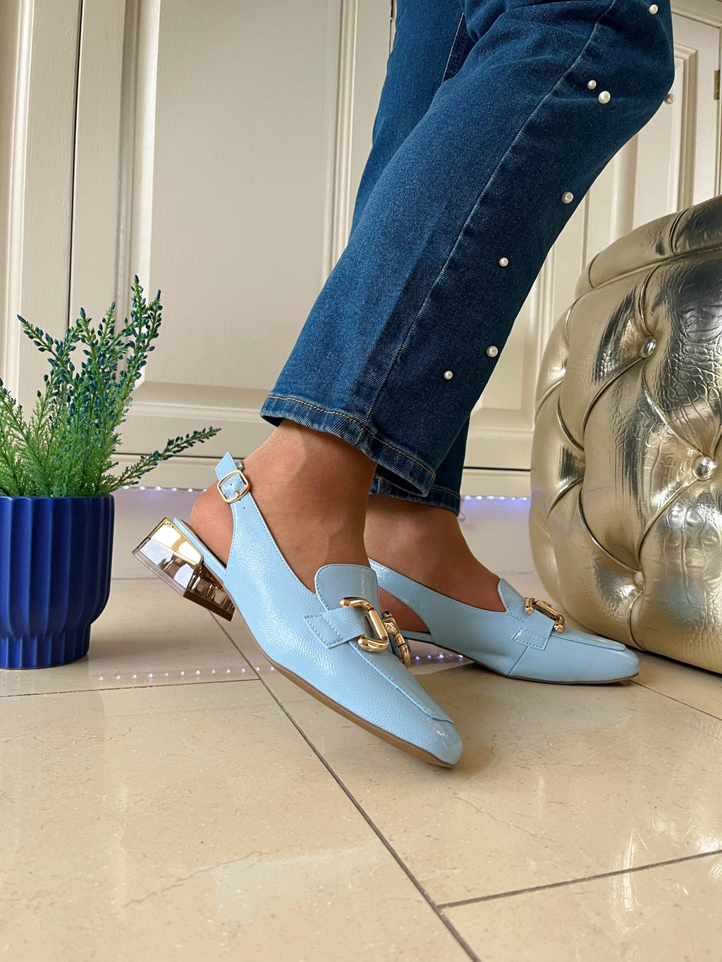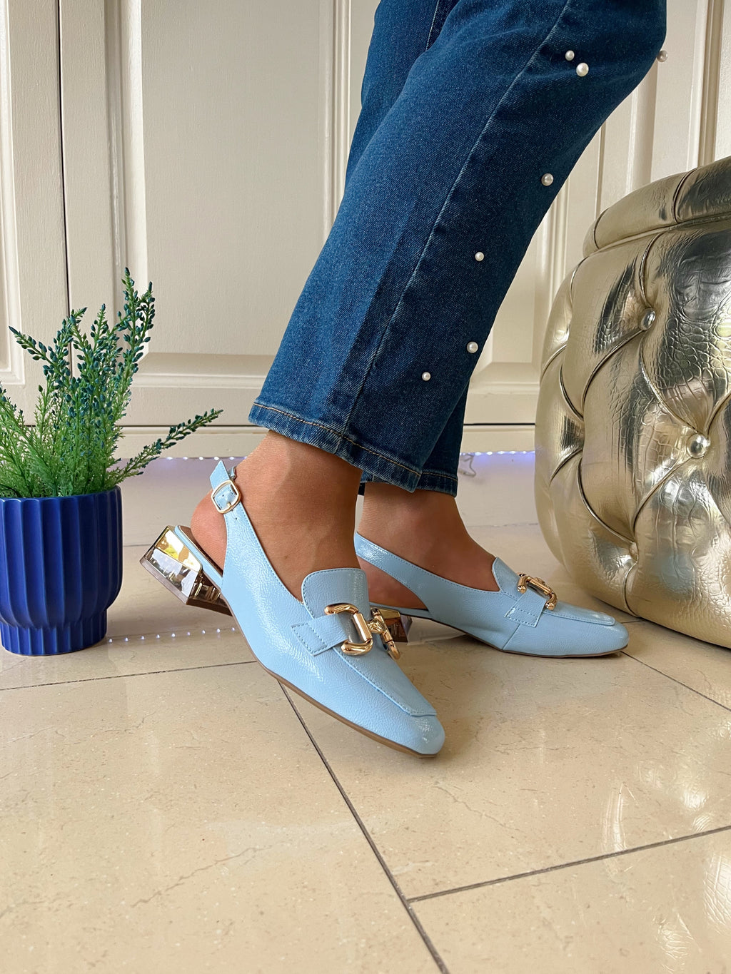 Gold block heel