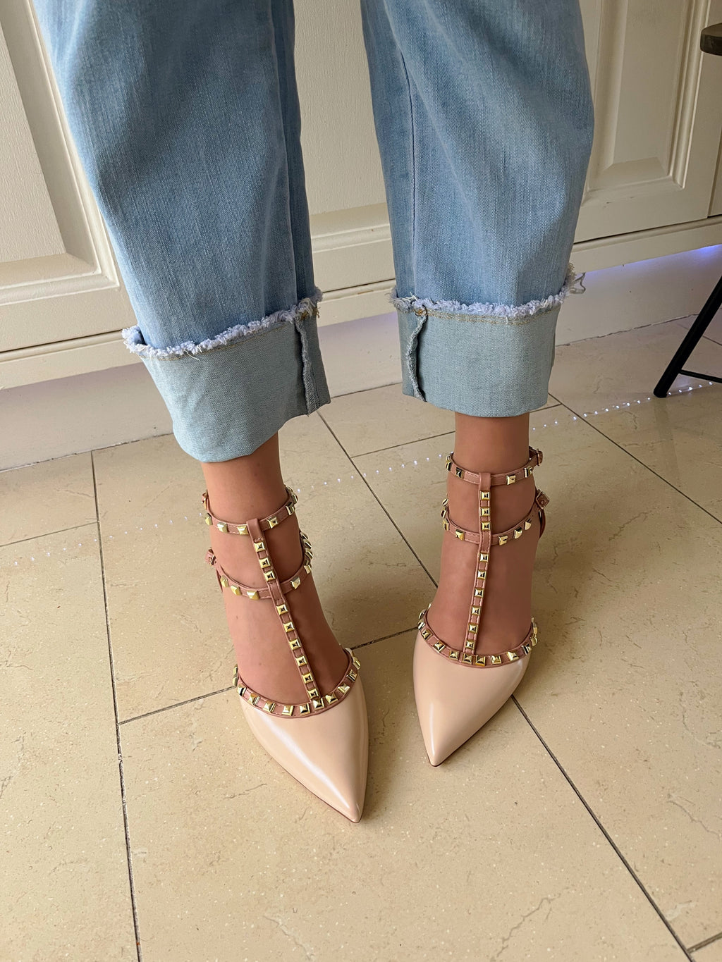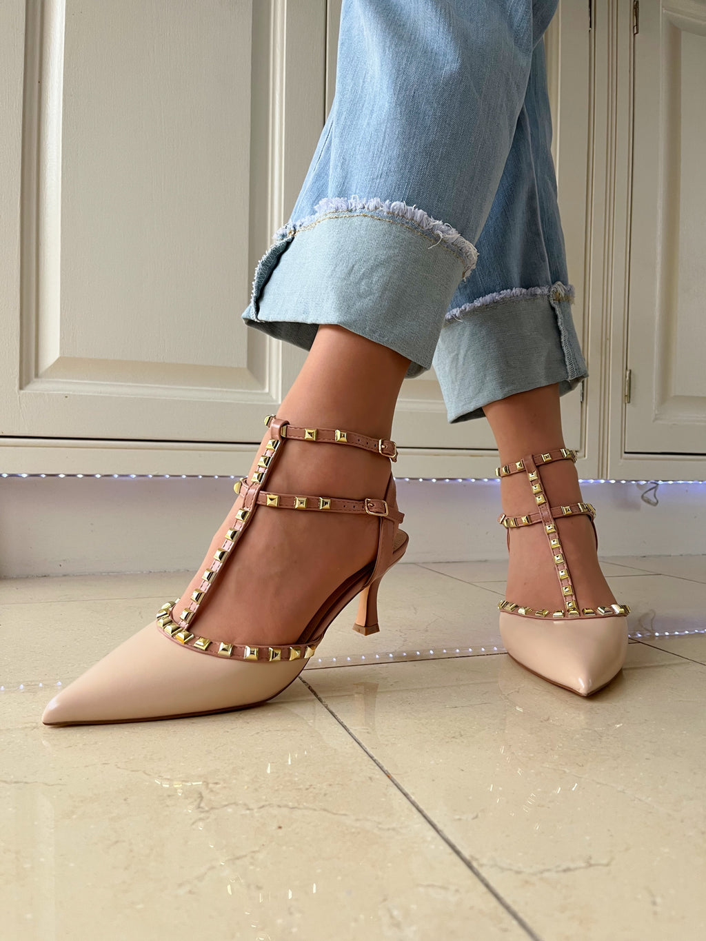 Colour - Neutral with gold stud straps