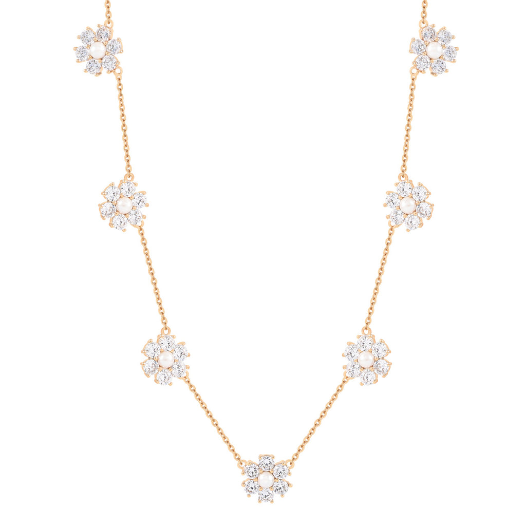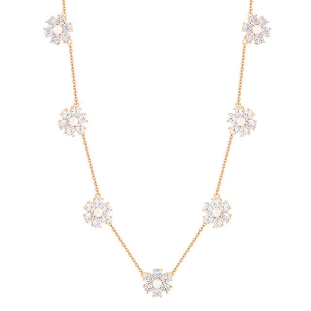 Tipperary Crystal - Cz & Pearl 7 Daisy Necklace Gold