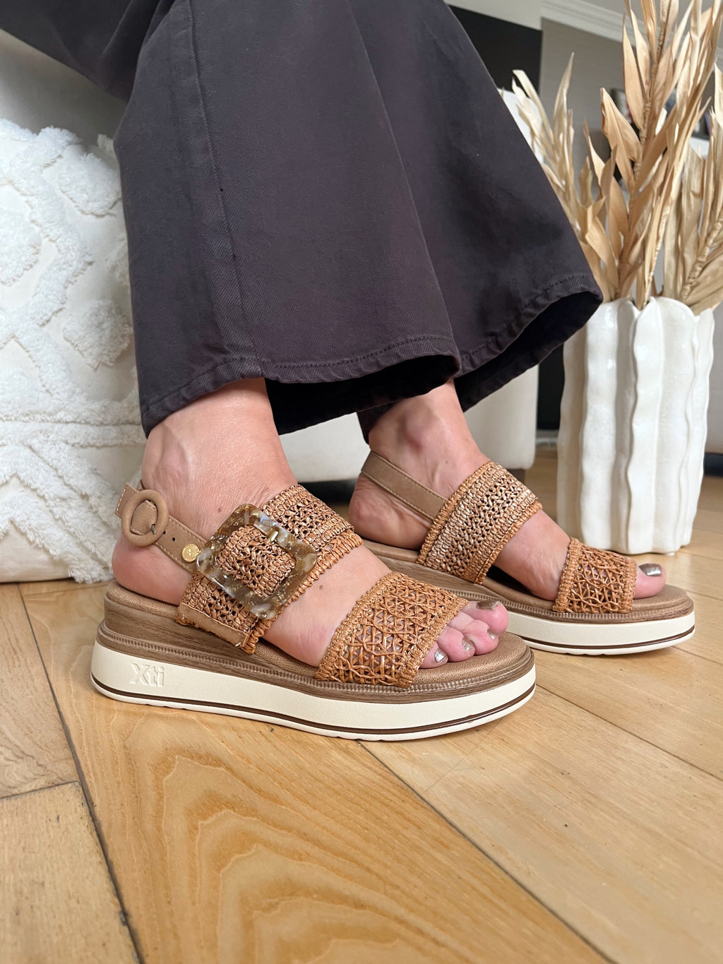 XTI Tort Buckle & Woven Wedged Sandal 145241 - Light Tan