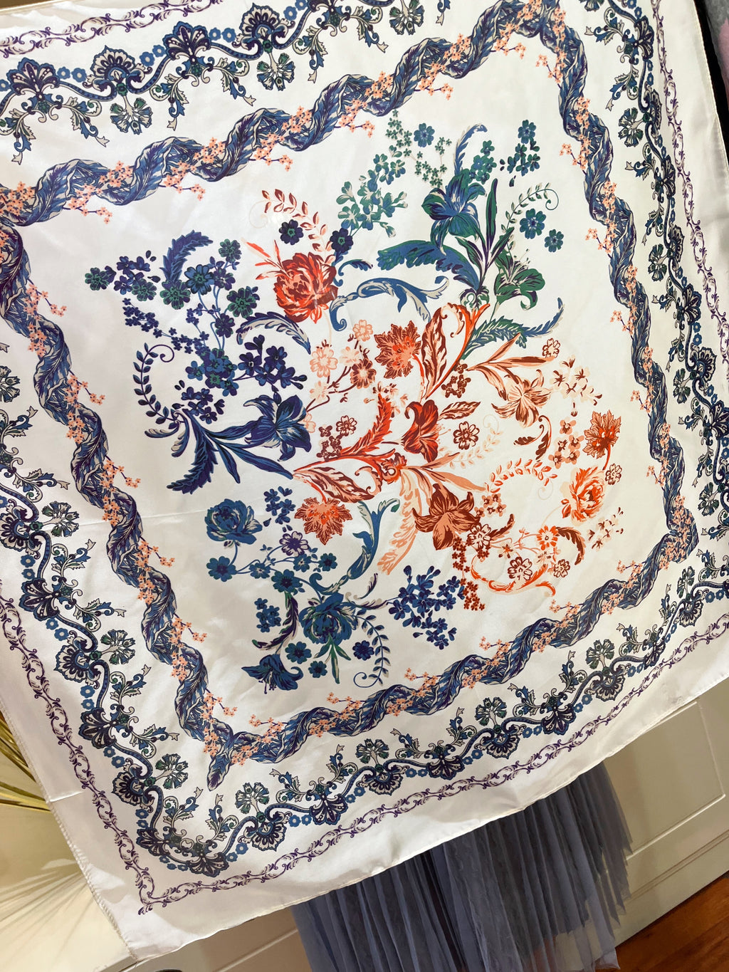 Bridgerton Floral Printed Neck Scarf - Blue Multi