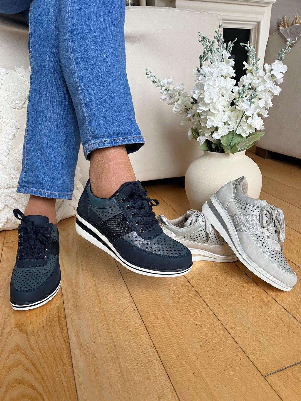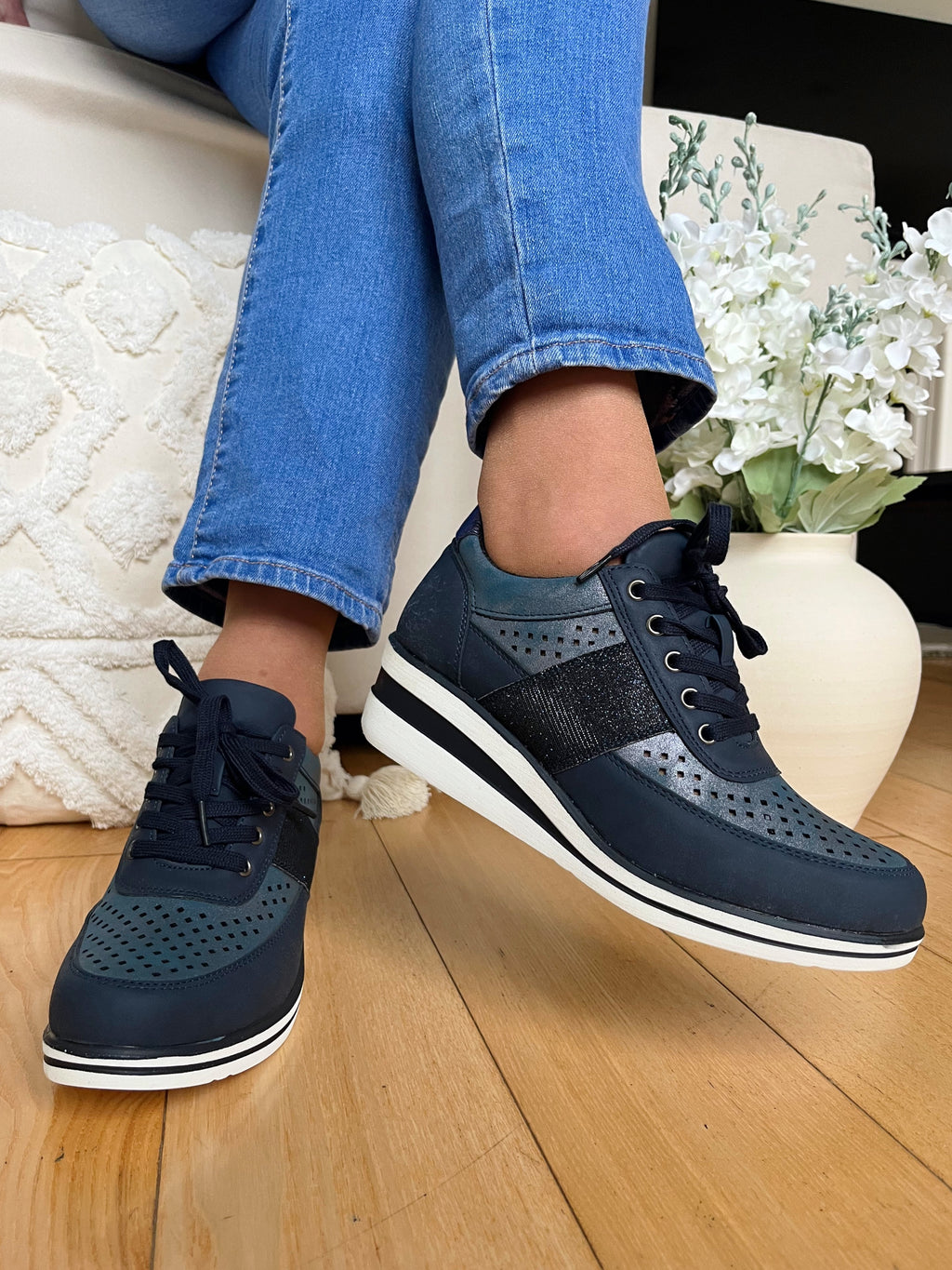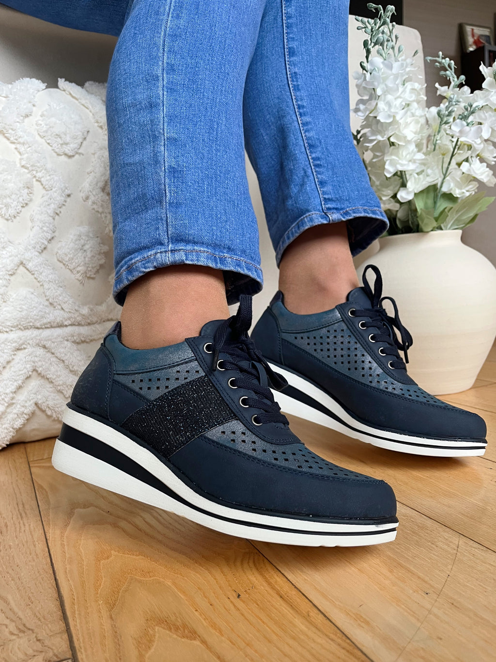 Redz Navy Laced Wedge Trainers - 6G20602K05