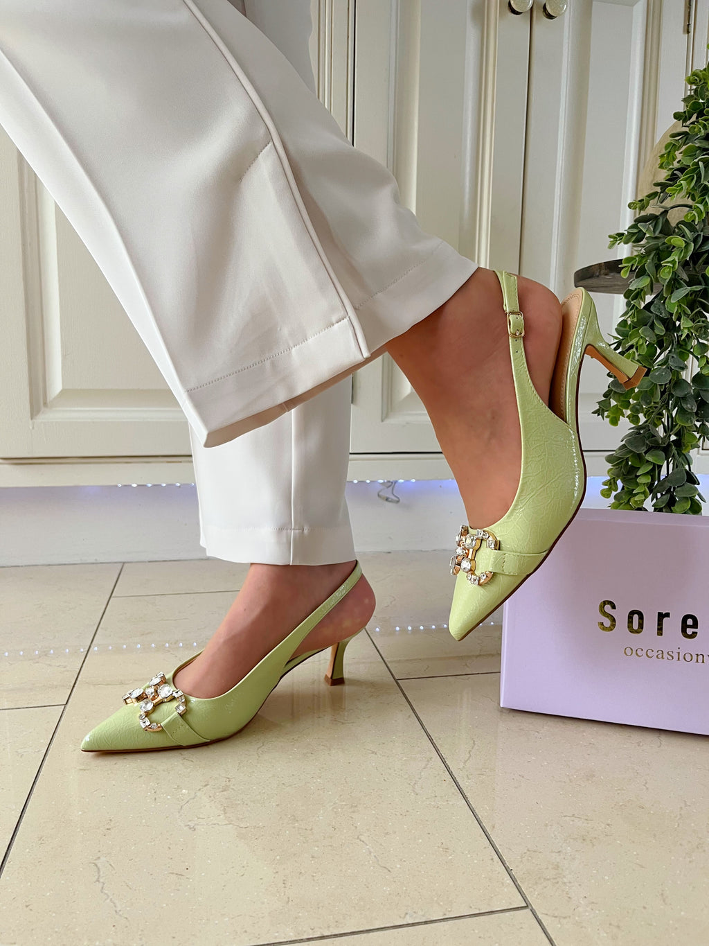 Sorento 'Cottonwood' Pistachio Lime Diamond Sling-Back